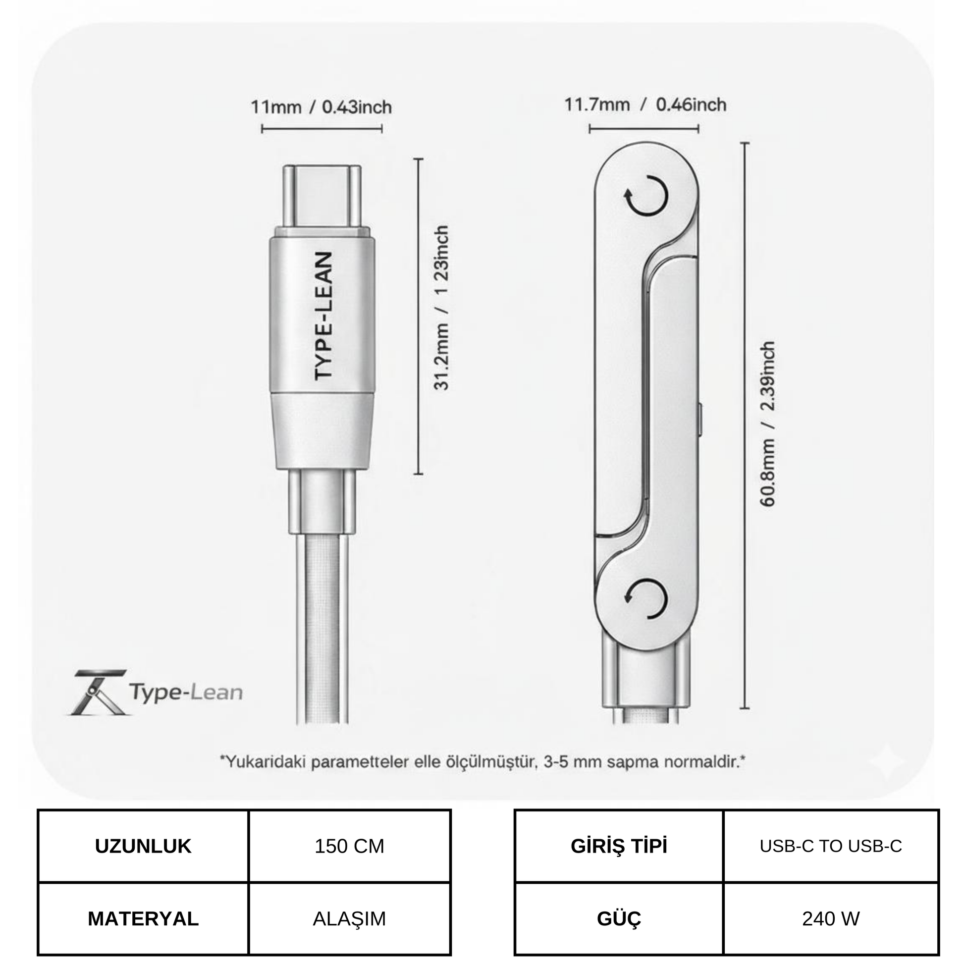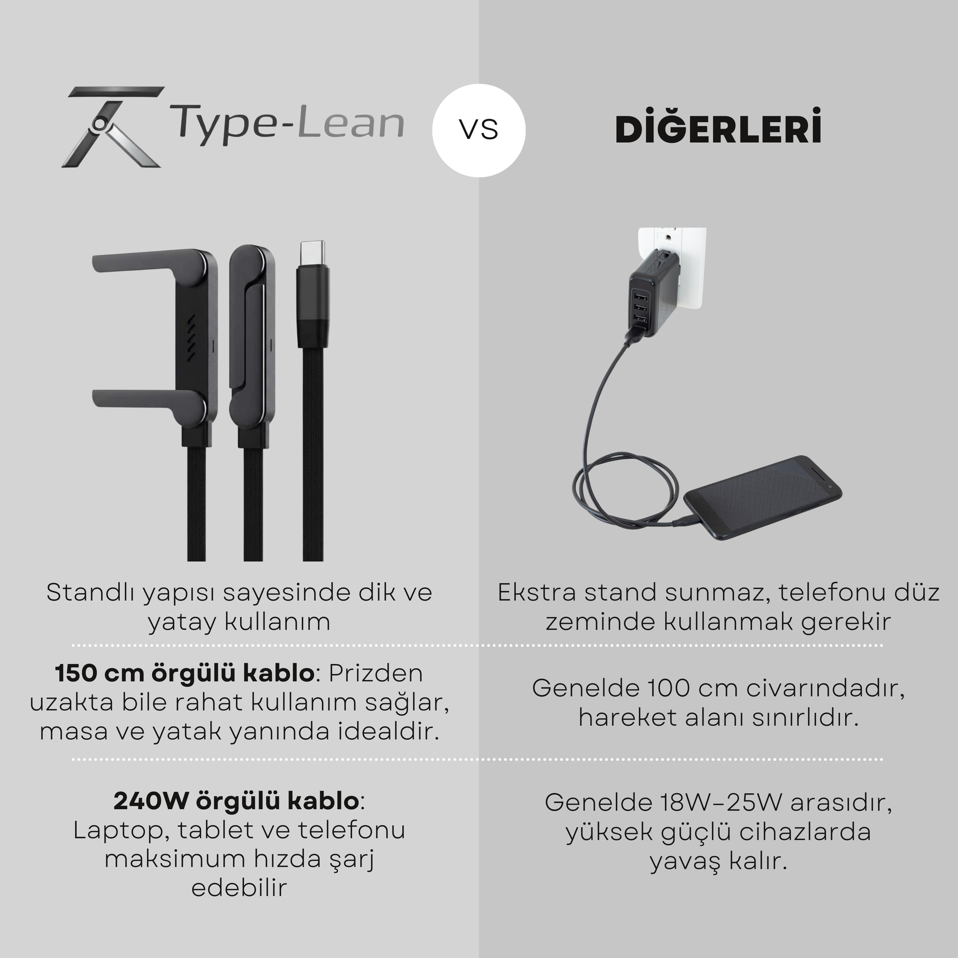 TYPE-LEAN™ STANDLI HIZLI ŞARJ KABLOSU